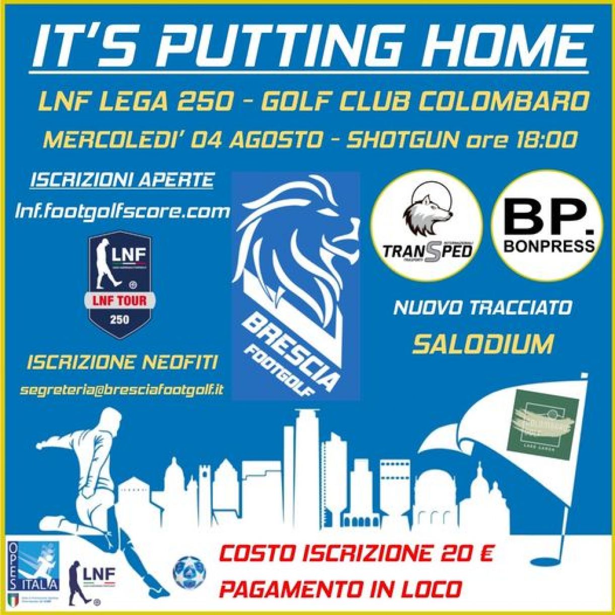 - INFORMAZIONI e RICHIESTE: segreteria@bresciafootgolf.it - tel. 339 7022798 Maurizio Pedrali