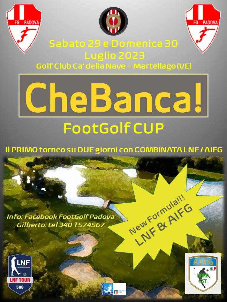 Sabato 29 e Domenica 30 Luglio 2023 FootGolf Padova organizza il CheBanca! FootGolf CUP il PRIMO TORNEO in Italia con la combinata di DUE gare targate LNF e AIFG!!!