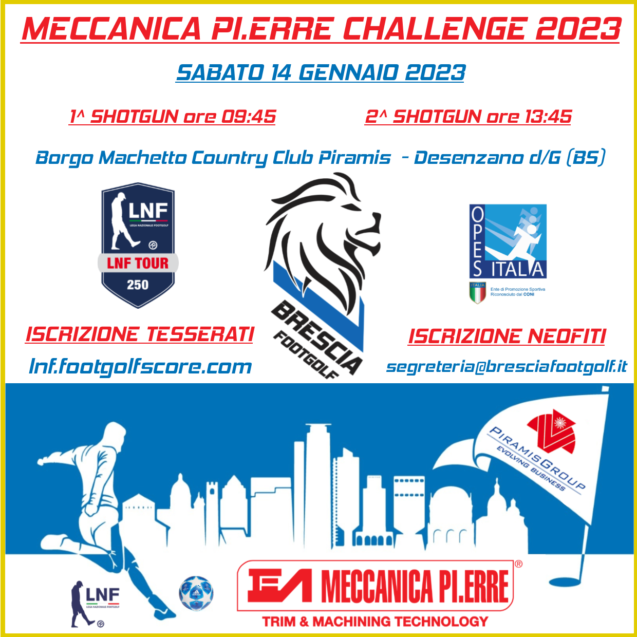 INFORMAZIONI e RICHIESTE: segreteria@bresciafootgolf.it