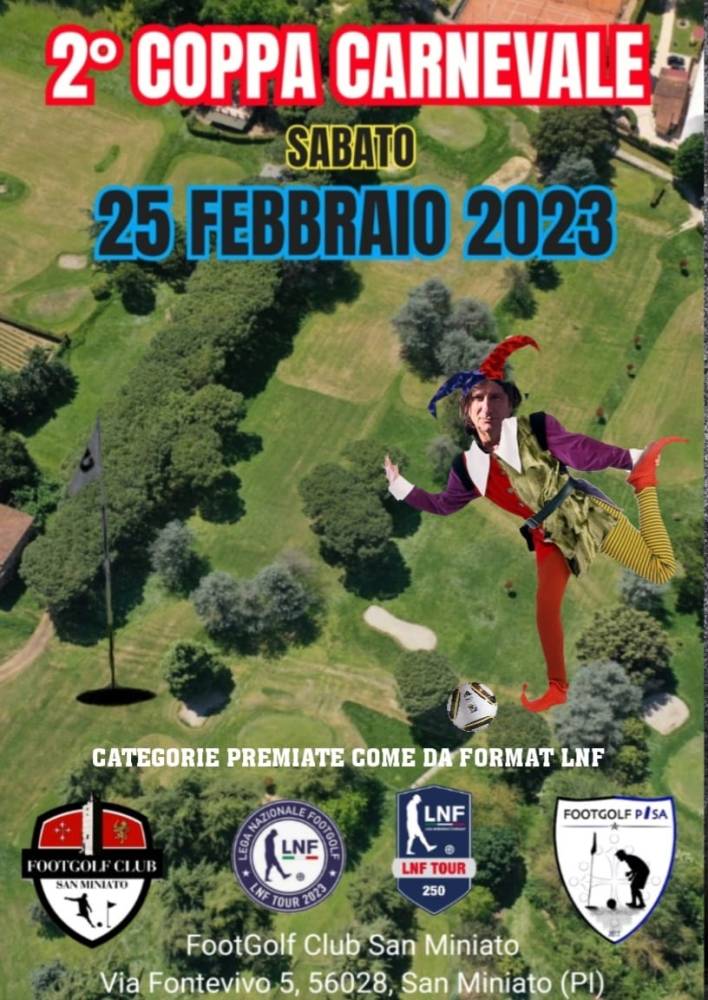 PER CAMBIAMENTI O AGGIORNAMENTI SEGUITE PAGINA FACEBOOK FOOTGOLF PISA e/o FOOTGOLF CLUB SAN MINIATO