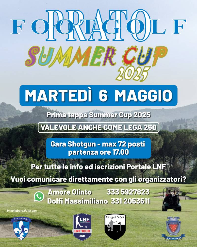 Grazie alla collaborazione tra Footgolf Siena, Footgolf Prato e Golf Le Pavoniere, la prima tappa della Summer Cup sarà anche una gara Lega Tour 2025 (Lega 250)!