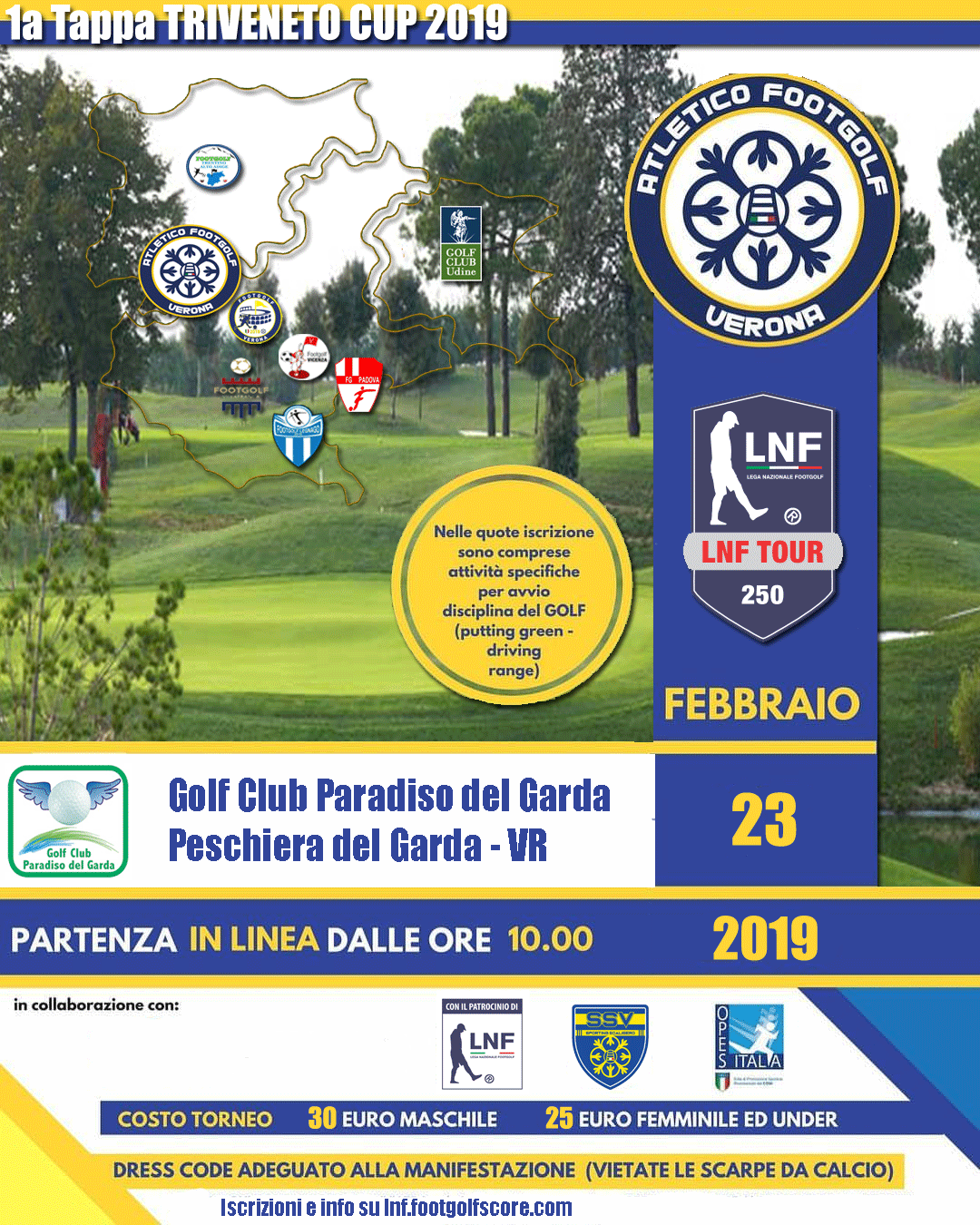 Presentarsi al tee delle buche di partenza almeno 15 minuti prima dell'inizio della gara.